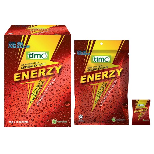 timo ENERZY Tutti Frutti Flavoured Drops is an energy candy that specially developed to vitalize your body and mind. It is formulated with combination of essential vitamins and nutrients that improves alertness, concentration and boost endurance.