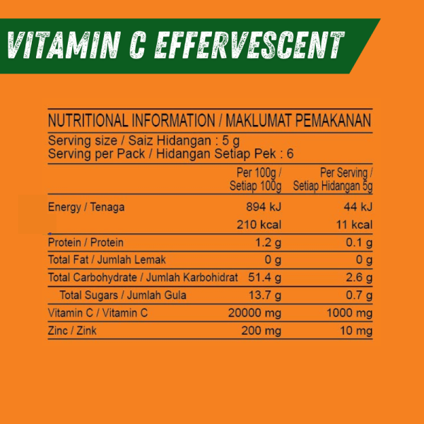 Timo Orange C 1000 is an effervescent flavoured drink base formulated with ascorbic acid (Vitamin C) and zinc gluconate, focusing on immune system support and designed to aid in defense against viral infections. Combining these two essential ingredients enhances Vitamin C’s antioxidative prowess and immune-boosting attributes, complemented by zinc’s role in immune regulation and antiviral properties.
