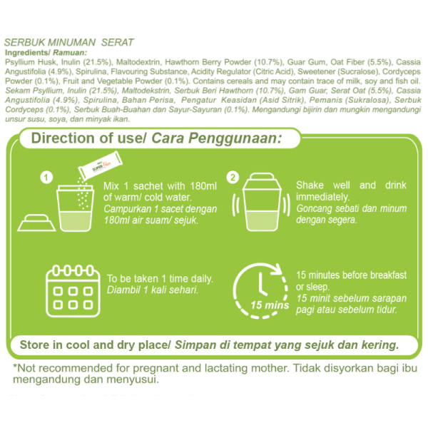 – Mix one sachet into 180ml warm/cold water in shaker, shake well and drink immediately.